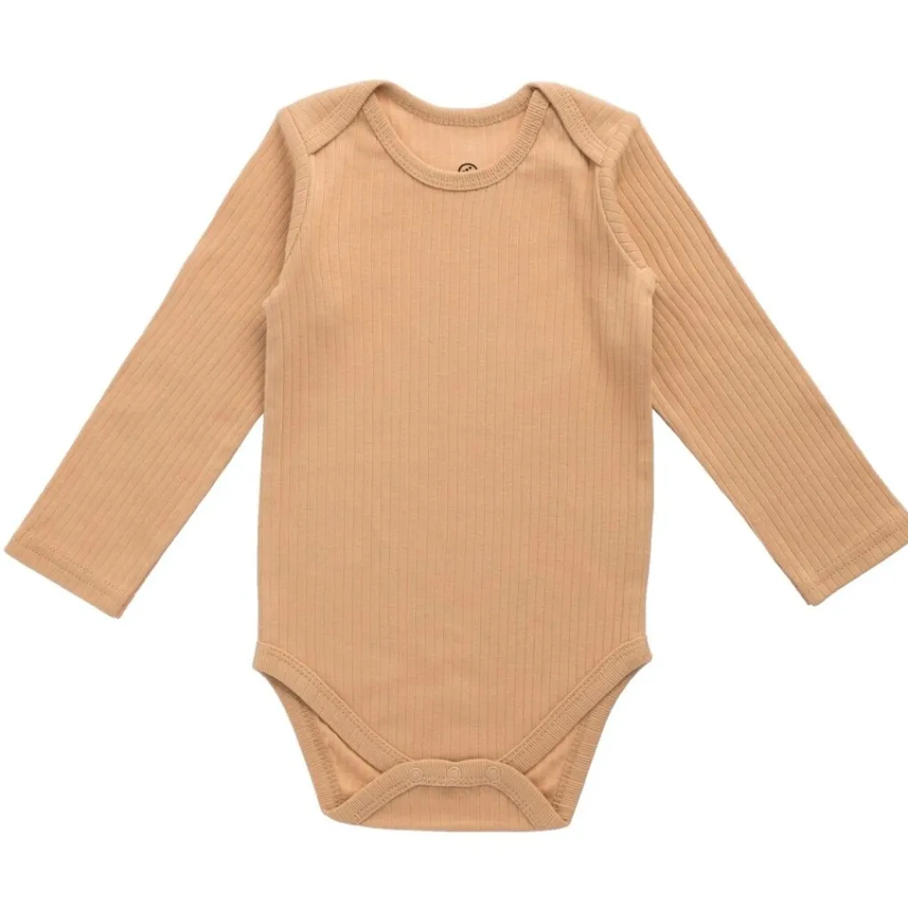 De Kruidvat Geribde Romper heeft lange mouwen en drukknopen aan de onderkant, voor gemakkelijk aan- en uittrekken. Hij is gemaakt van 96% BCI katoen en 4% elastaan.