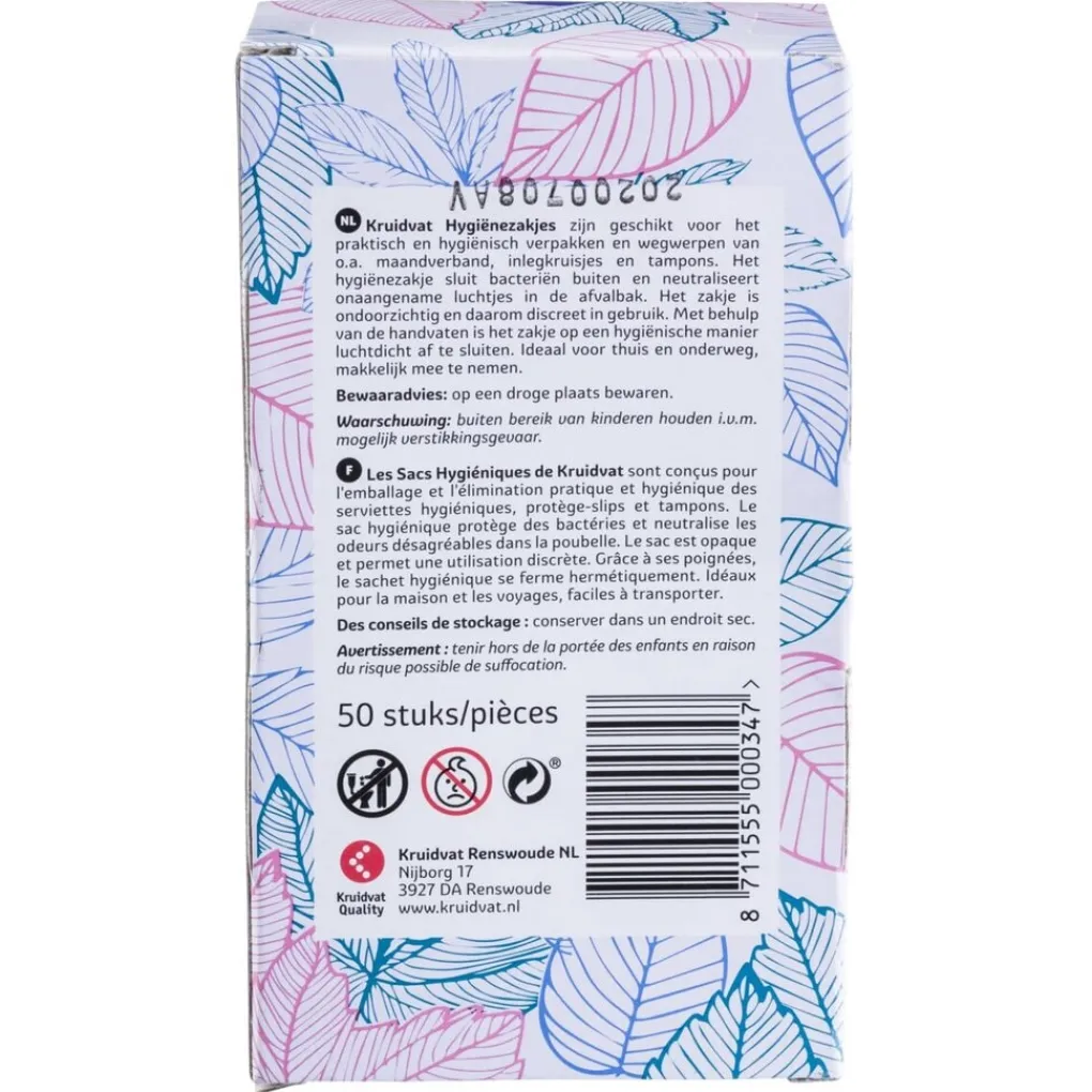Kruidvat Hygiënische Wegwerp Zakjes zijn gemaakt van geurdichte folie, zodat je ongewenste geurtjes niet ruikt. De wegwerpzakjes zijn ook handig voor onderweg.