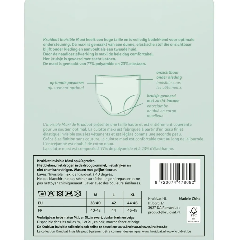De Kruidvat Invisible Maxi Damesslip heeft een hoge taille en is volledig bedekkend voor optimale ondersteuning. De maxi is gemaakt van een dunne, elastische stof die onzichtbaar blijft onder kleding en aanvoelt als een tweede huid.
