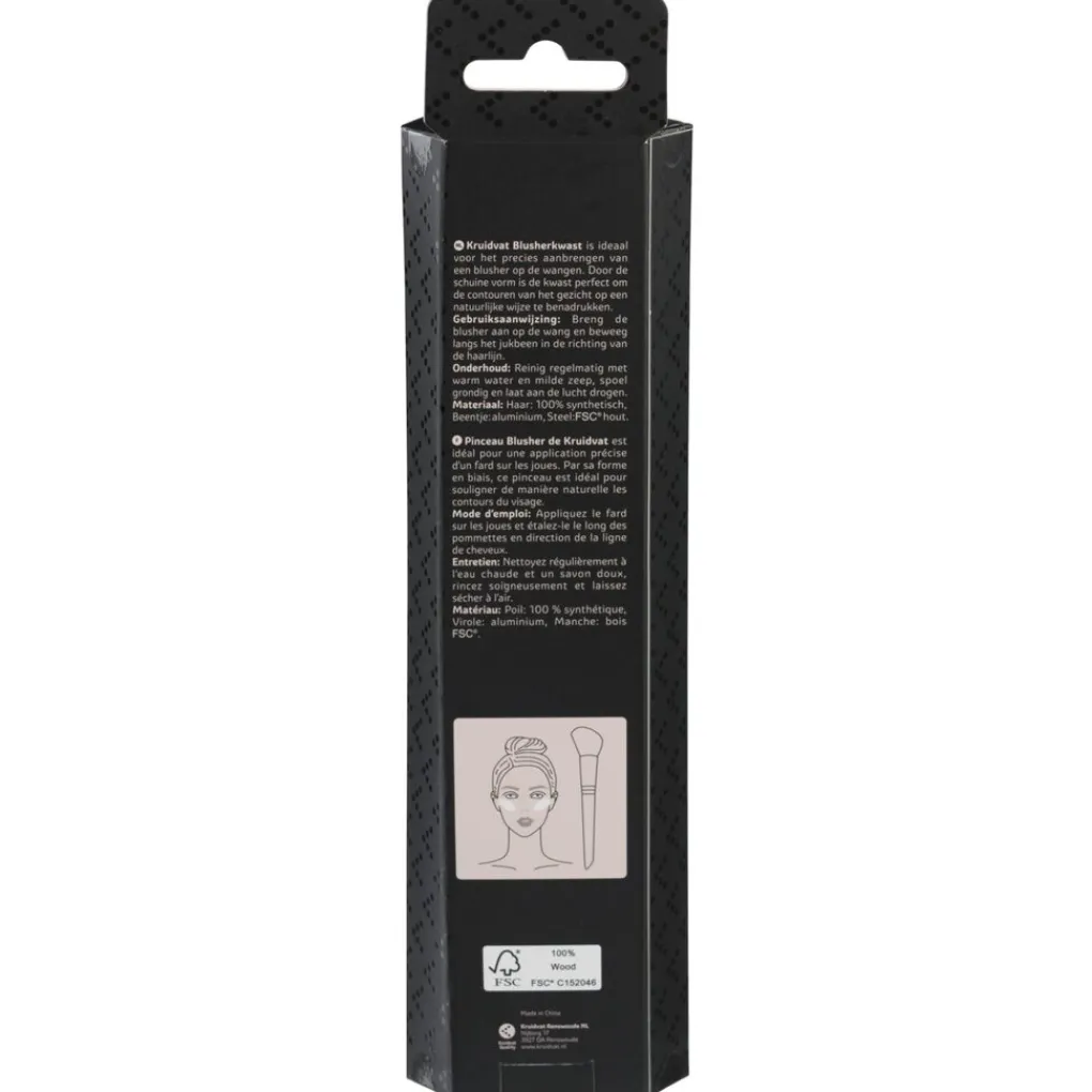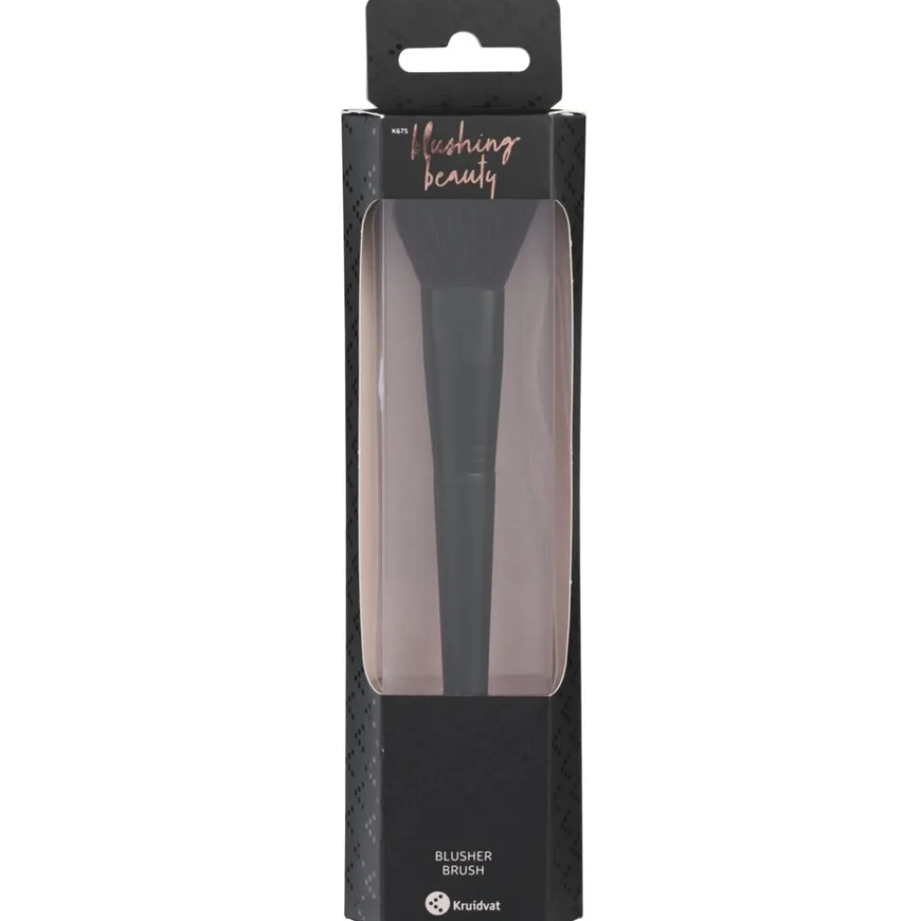 De Kruidvat k675 Blusherkwast is ideaal voor het precies aanbrengen van een blusher op de wangen. Door de schuine vorm is de kwast perfect om de contouren van het gezicht op een natuurlijke wijze te benadrukken.