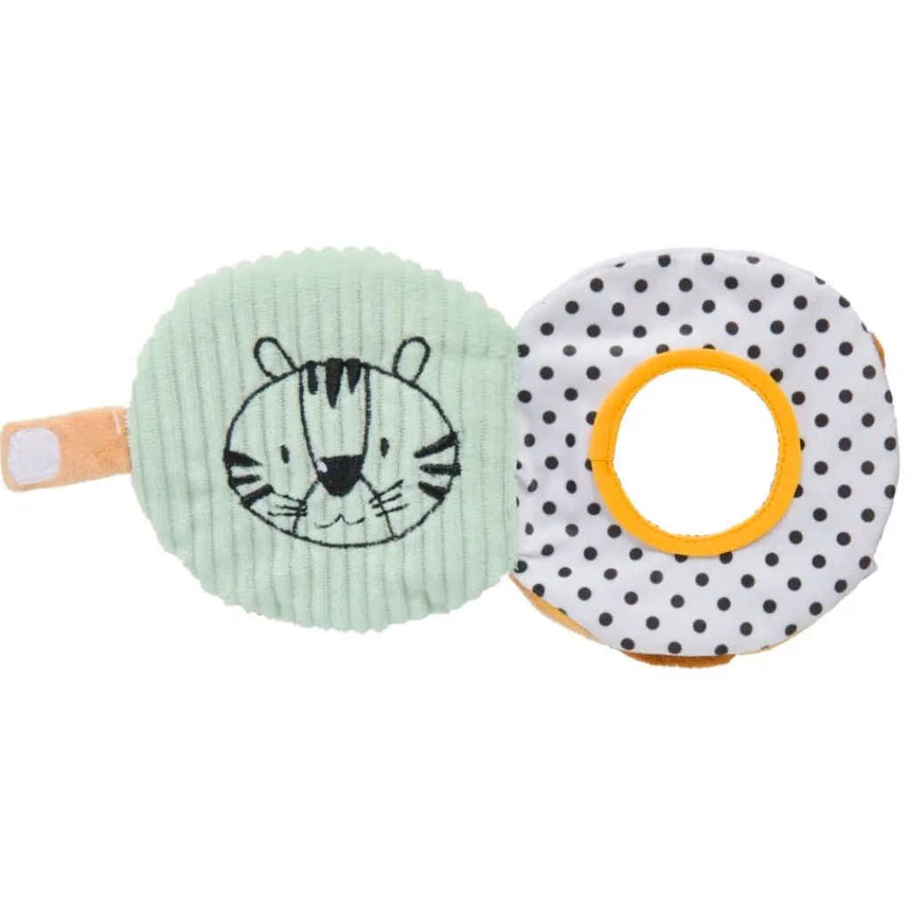 Dit product voelt zacht aan en is fijn om mee te knuffelen. Door de lus met klittenband bevestig je het boekje gemakkelijk aan de buggy of box. Je kunt het knuffelboekje afnemen met een vochtige doek.
