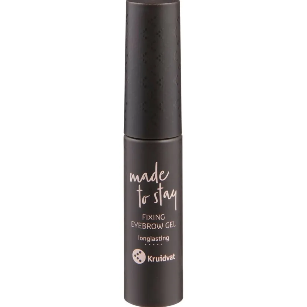 Houd eenvoudig de hele dag je wenkbrauwen in een perfecte vorm met de sterk fixerende formule en het mini-borsteltje van de Kruidvat Made To Stay 060 Deep Brown Fixing Eyebrow Gel.