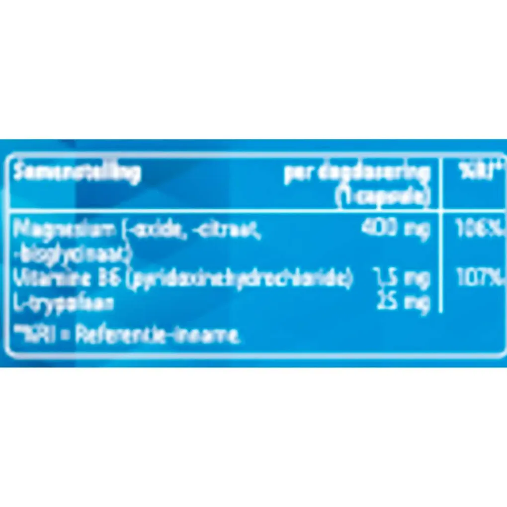 Ingrediënten: mineralen, gelatine (rund/varken), vulstof (microkristallijne cellulose), l-trypofaan, stabilisator (magnesiumzouten van vetzuren), vitamine.