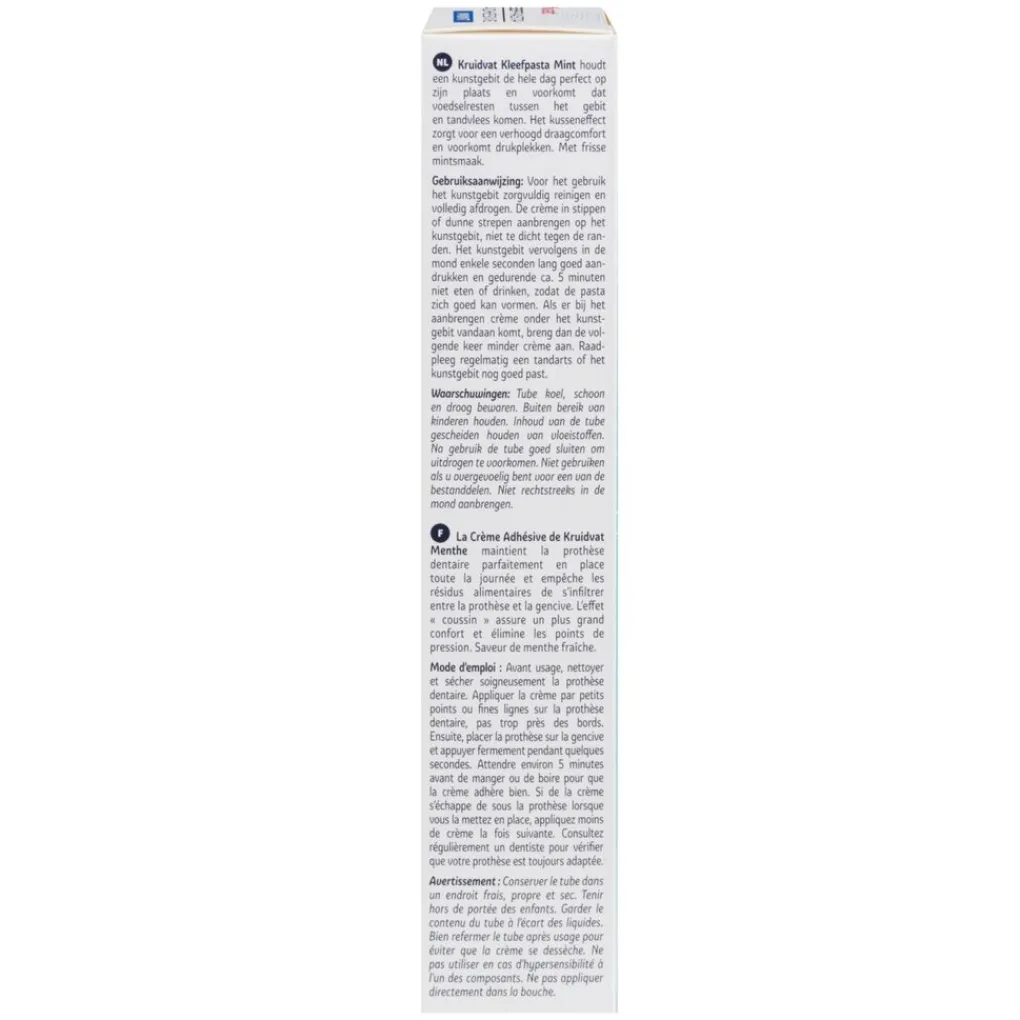 Kruidvat Mint Kleefpasta houdt je kunstgebit de hele dag perfect op zijn plaats. De kleefpasta helpt te voorkomen dat voedselresten tussen je gebit en je tandvlees komen.