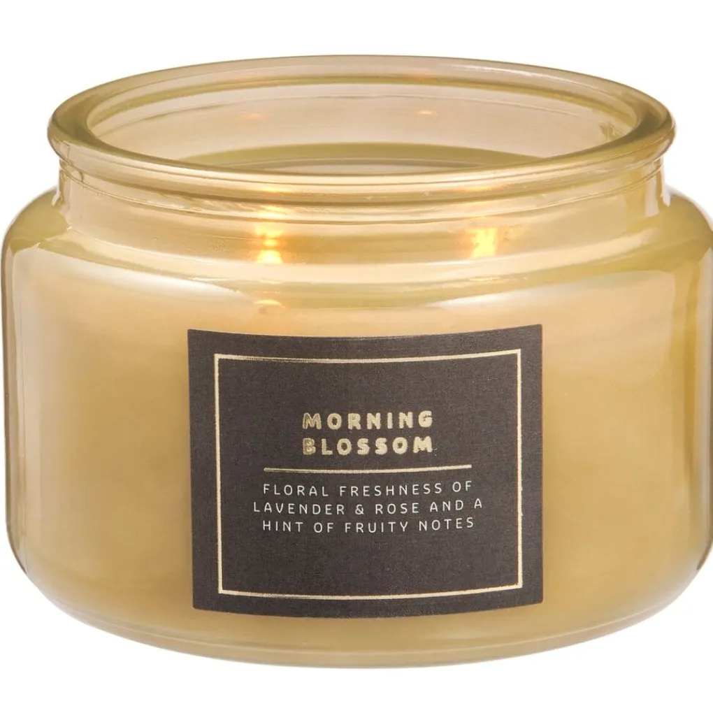 Stap in de wereld van frisheid met de Kruidvat Morning Blossom Geurkaars. De hinten van peer, perzik en grapefruit nemen je mee naar zomerse tuinen.