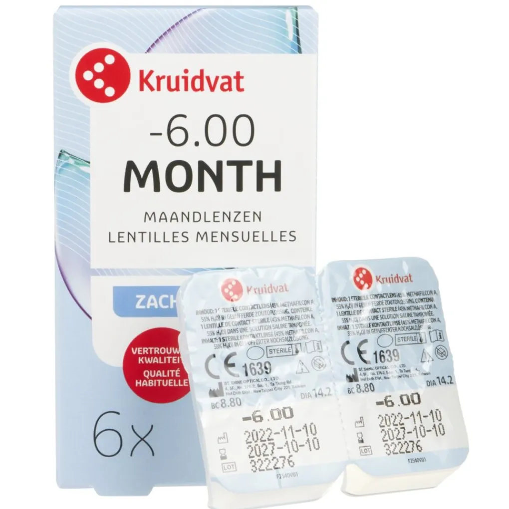 Deze dunne, soepele lenzen hebben een hoog draagcomfort. De Kruidvat Opticare -6.00 Zachte Maandlenzen zijn geschikt voor 1 maand gebruik als je al geruime tijd probleemloos zachte contactlenzen draagt.