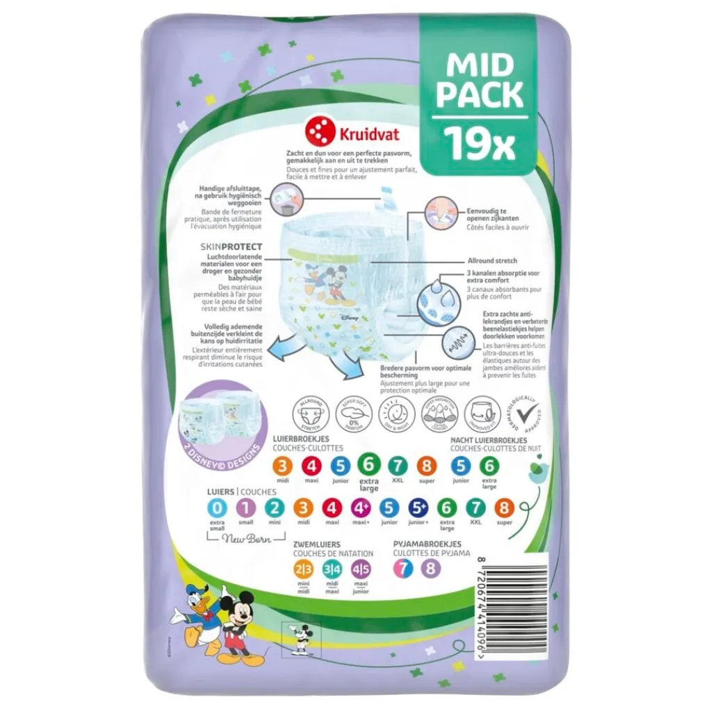 Als je kiest voor Kruidvat Pants Extra Large Maat 6 Luierbroekjes Midpack, kies je voor een zeer zacht en super elastisch luierbroekje dat in elke situatie zijn vorm behoudt.