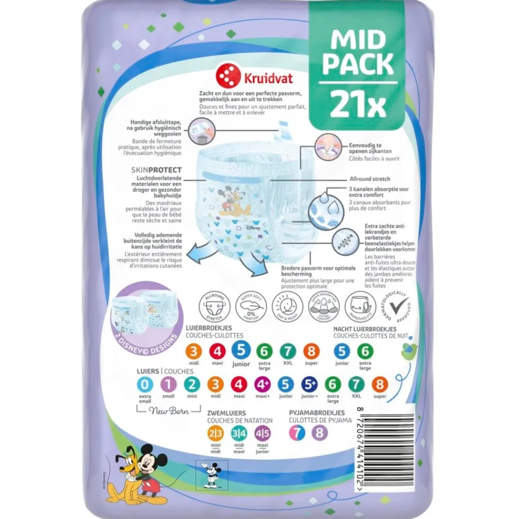 Kenmerken van de Kruidvat Pants Junior Maat 5 Luierbroekjes Midpack: