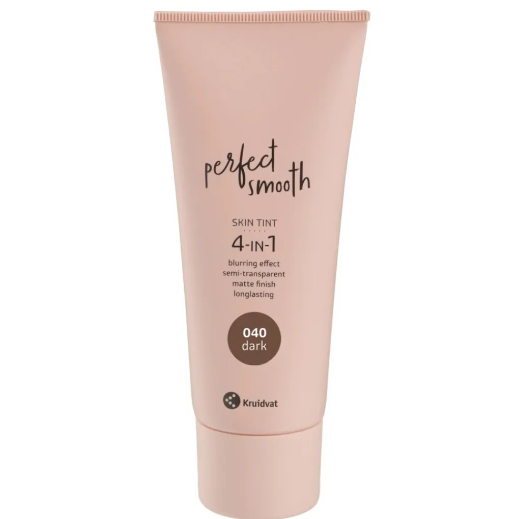 Kruidvat Perfect Smooth 040 Dark 4-in-1 Skin Tint is een getinte crème die de zichtbaarheid van poriën en fijne lijntjes vermindert. De crème biedt een instant blurring effect met een matte finish!