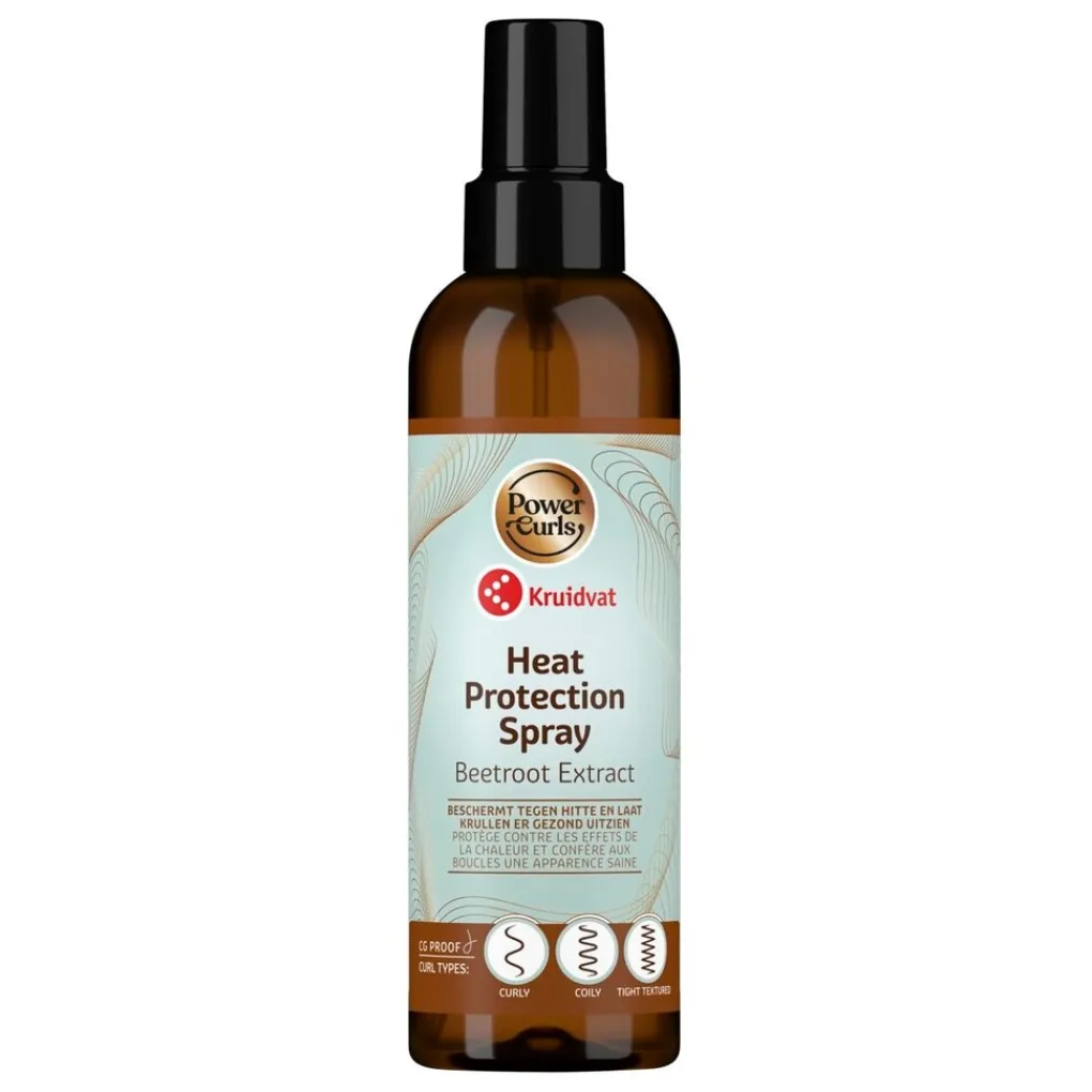 De Kruidvat Power Curls Heat Protection Spray is speciaal ontwikkeld voor curly, coily en tight textured haar. De formulering beschermt je krullende haar tegen de schadelijke effecten van hete haarstylingtools tot 230°C.