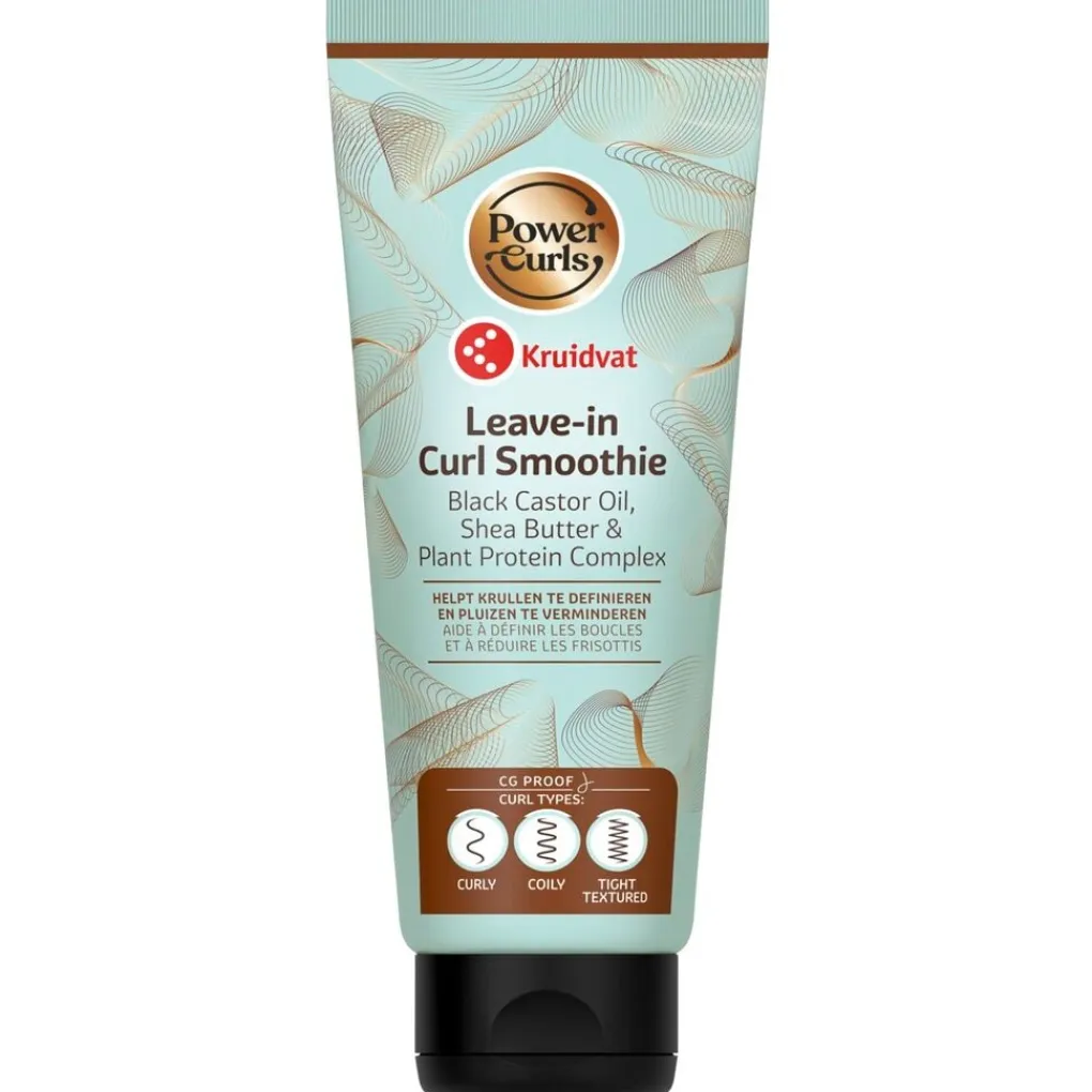 De Kruidvat Power Curls Leave-In Curl Smoothie is speciaal ontwikkeld voor curly, coily en tight textured haar. De formule is verrijkt met black castor olie, sheaboter en plantaardig proteïne complex.