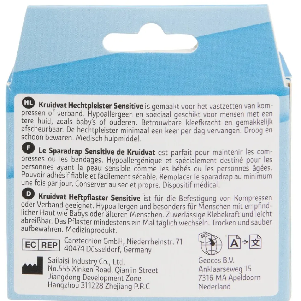 De Kruidvat Sensitive Hechtpleister is gemaakt voor het vastzetten van kompressen of verband. Het is hypoallergeen en speciaal geschikt voor mensen met een tere huid, zoals baby’s of ouderen.