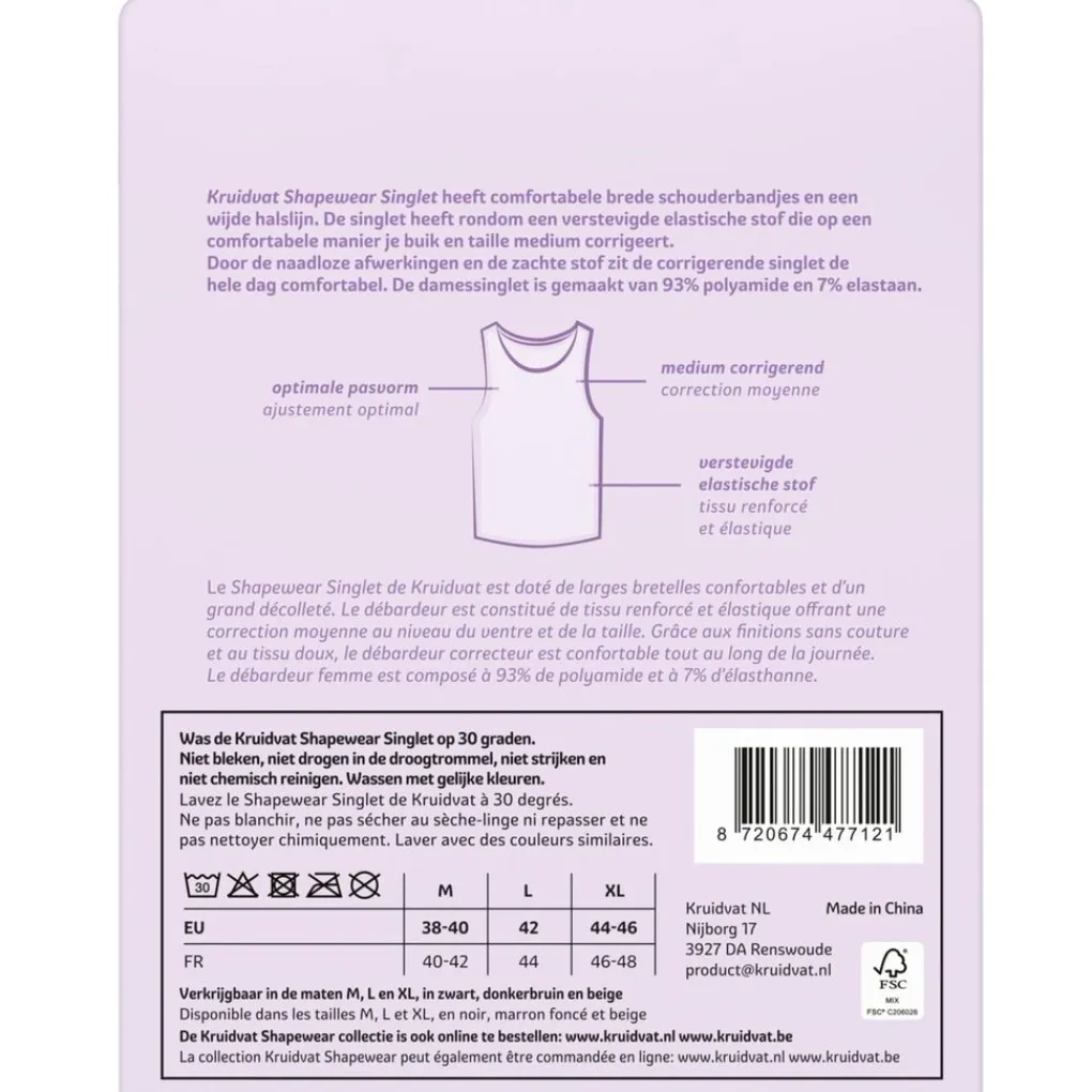 De Kruidvat Shapewear Damessinglet heeft comfortabele brede schouderbandjes en een wijde halslijn. De singlet heeft rondom een verstevigde elastische stof die op een comfortabele manier je buik en taille medium corrigeert.