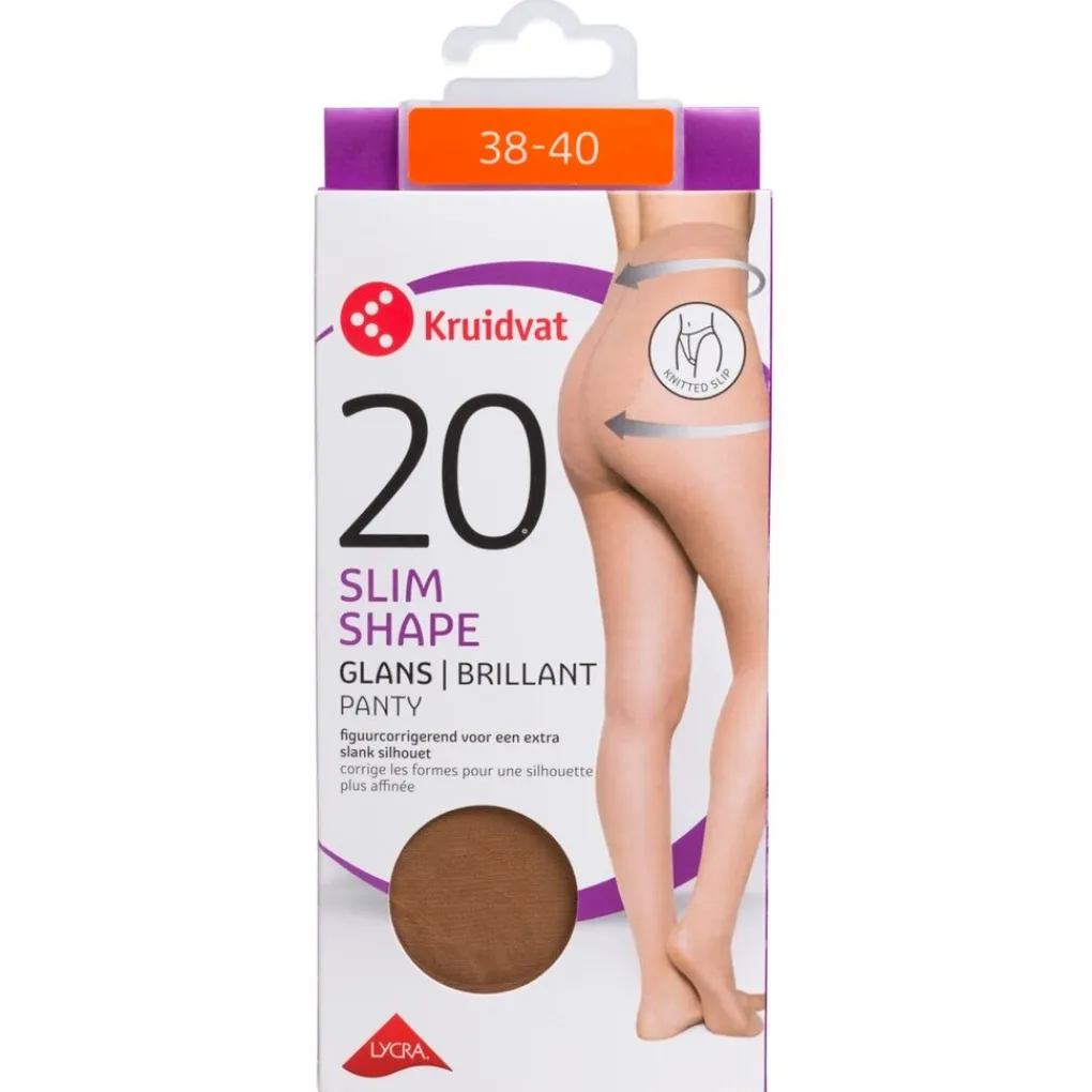 De Kruidvat Slim Shape Glans 20 Den Panty is een figuurcorrigerende panty met een ingebreide slip die je buik en billen corrigeert voor een extra slank silhouet.
