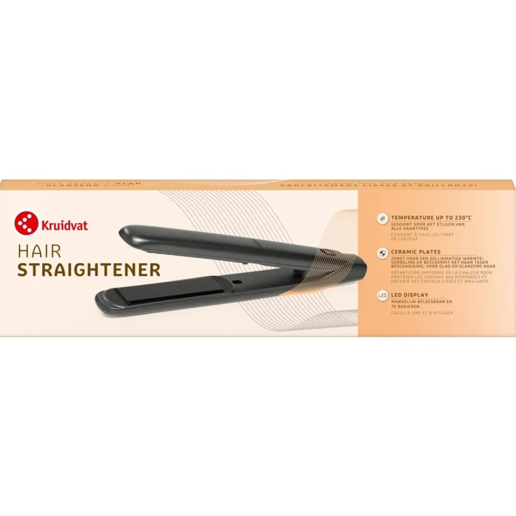 De Kruidvat Stijltang bedien je makkelijk en heeft een leddisplay dat makkelijk af te lezen is.