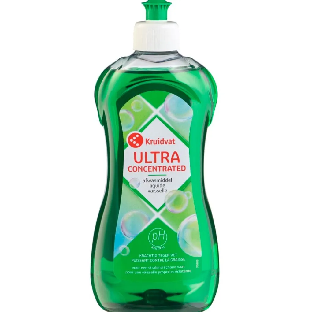 Zorg voor een stralend schone vaat met het Kruidvat Ultra Concentrated Afwasmiddel. Het maakt zelfs je meest vette vaat gemakkelijk en grondig schoon.