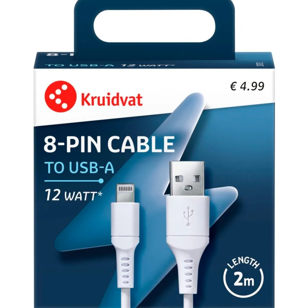 Kruidvat USB-A 8-pin cable 2m 12w 1 stuk