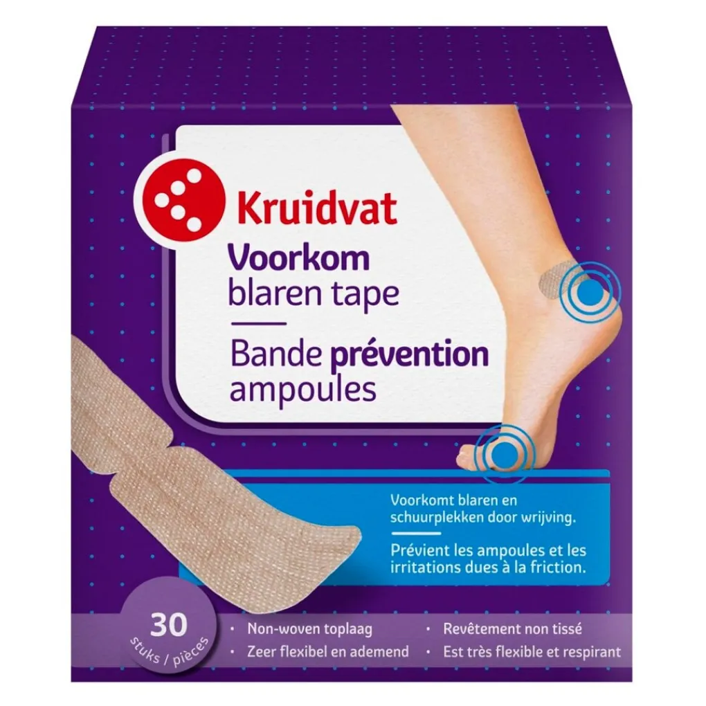 Met de Kruidvat Voorkom Blaren Tape voorkom je schuurplekken en blaren door wrijving.