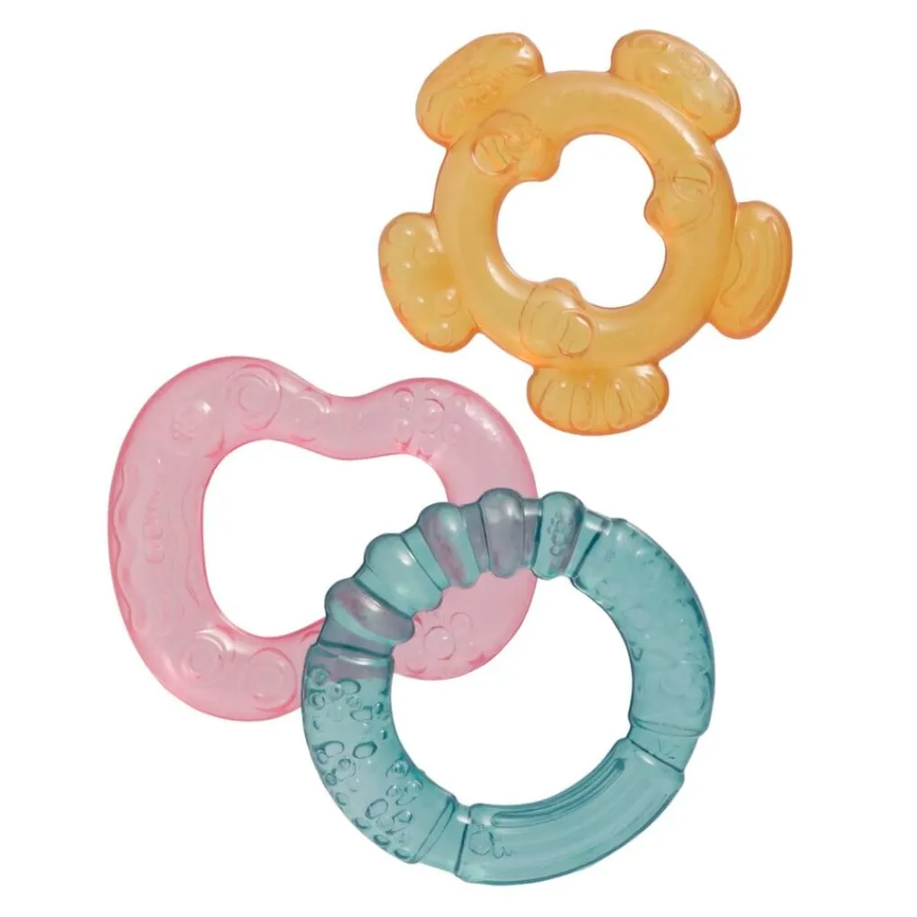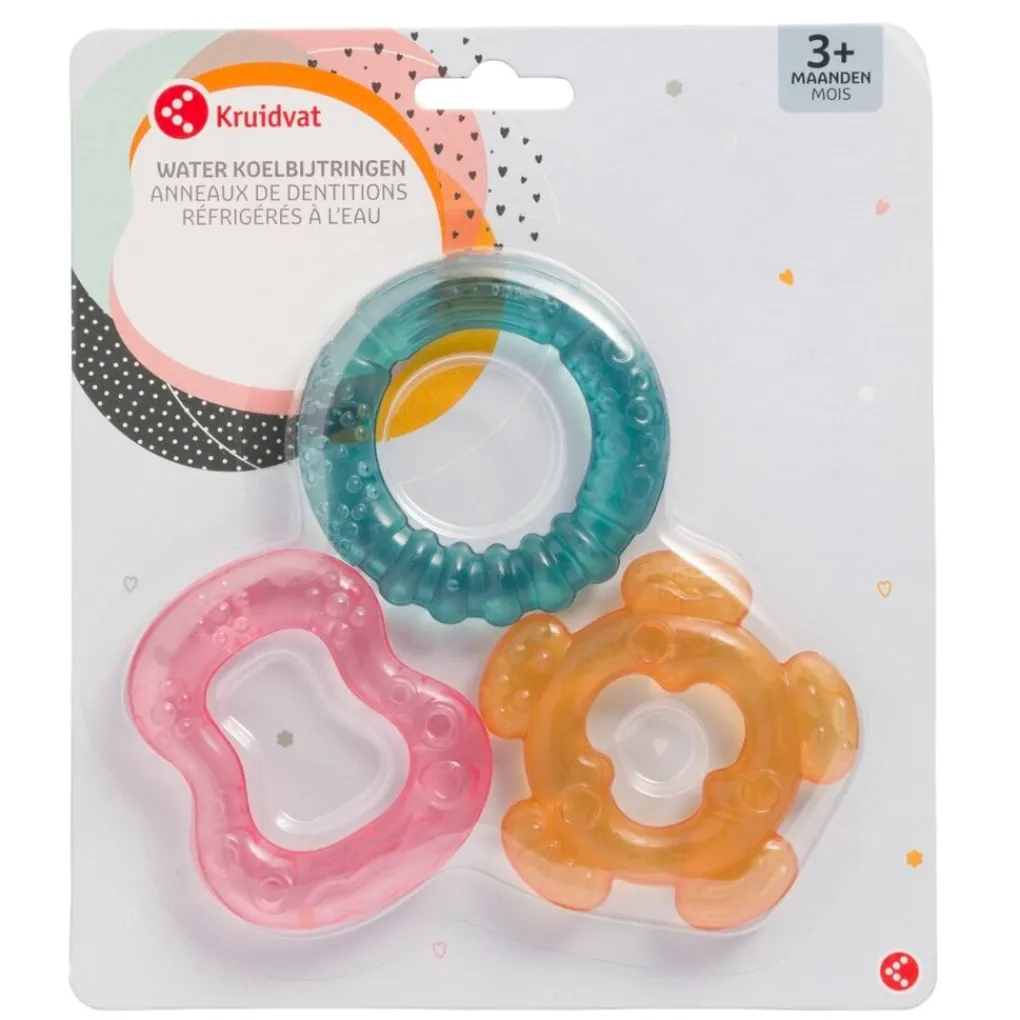De Kruidvat Waterkoelbijtringen zijn ideaal om het tandvlees te verzachten bij doorkomende tandjes. Ze kunnen worden gekoeld in de koelkast om de pijn extra te verzachten.