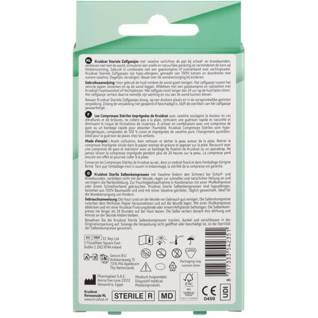 Kruidvat Steriele Zalfgaasjes met vaseline verlichten de pijn bij schaaf- en brandwonden,verkleven niet met de wond, stimuleren een snelle en natuurlijke genezing en verminderen dekans op littekenvorming.
