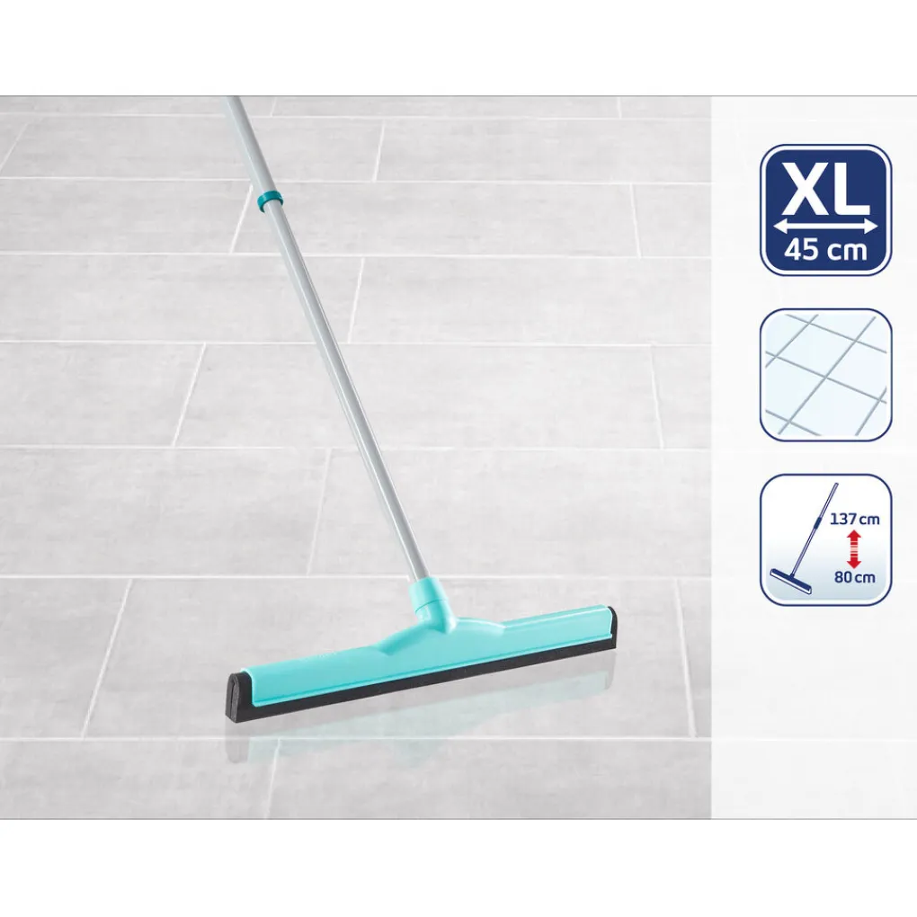 De Leifheit Classic watertrekker is ideaal voor het gemakkelijk en nauwkeurig reinigen van terrassen, trappen keukens en badkamers. De trekker heeft een dubbele aftreklip van synthetisch rubber dat zowel water als vuil van tegels en stenen vloeren verwijdert. Wat de eerste rubberen lip niet kan meenemen wordt door de tweede makkelijk verwijderd. De trekker heeft een telescoopsteel, en is dus in hoogte verstelbaar, zodat je altijd comfortabel werkt. De steel is uittrekbaar van 85 tot 140 cm.