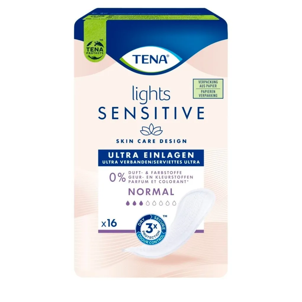 Tena Lights Sensitive Normal Verbanden zijn ontwikkeld voor matig urineverlies en beschermen de gevoelige huid. Tena Lights absorberen snel, zijn vriendelijk voor de intieme huid en bevatten geen geur- en kleurstoffen.