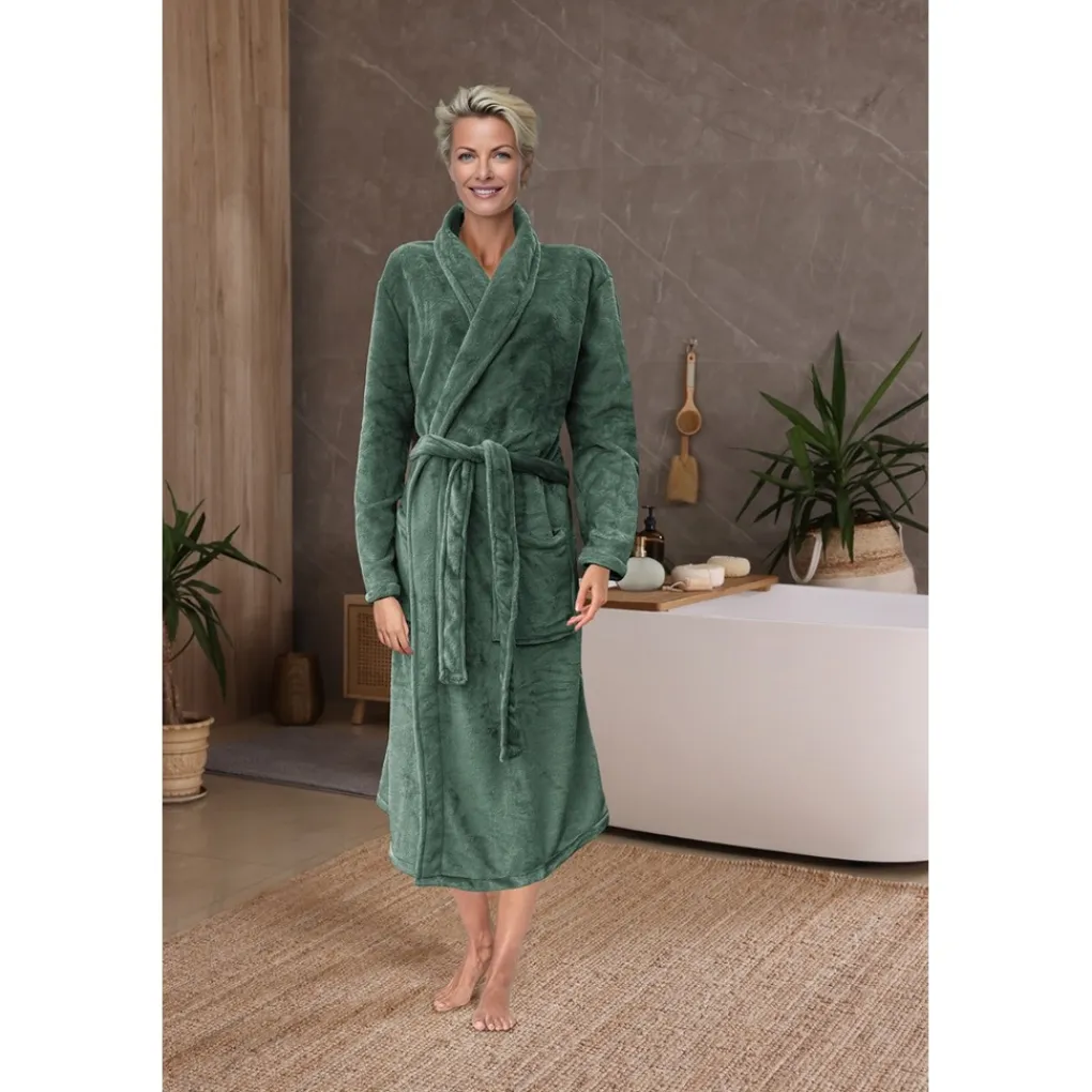 De badjas is gemaakt van soepele heerlijk zachte fleece. Het materiaal voelt zacht aan op de huid en houdt je lekker warm. Dankzij het lange model, de diepe zakken, fijne kraag en ceintuur zit ‘ie ook nog eens supercomfortabel.
