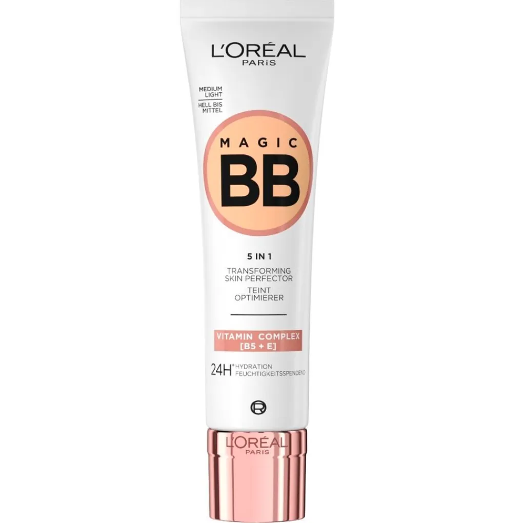 L’Oréal Paris Magic BB Medium Light 5-in-1 Transforming Skin Corrector is een verzorgende dagcrème en make-up in 1. Met deze crème heb je 5 effecten in 1: het egaliseert, hydrateert, beschermt, maakt gladder en laat huid stralen.