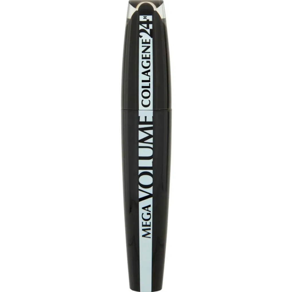De L’Oréal Paris Mega Volume Collageen 24H 01 Extra Black Mascara is een mega volumemascara. De formule is verrijkt met collageen en blackboosterpigmenten, die zorgen voor een extra zacht resultaat en je wimpers maximaal volume geven.