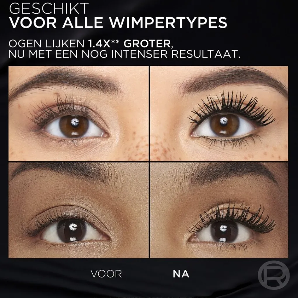 • Het resultaat is 1,4 keer* groter lijkende ogen, een intens panoramisch volume en langere wimpers