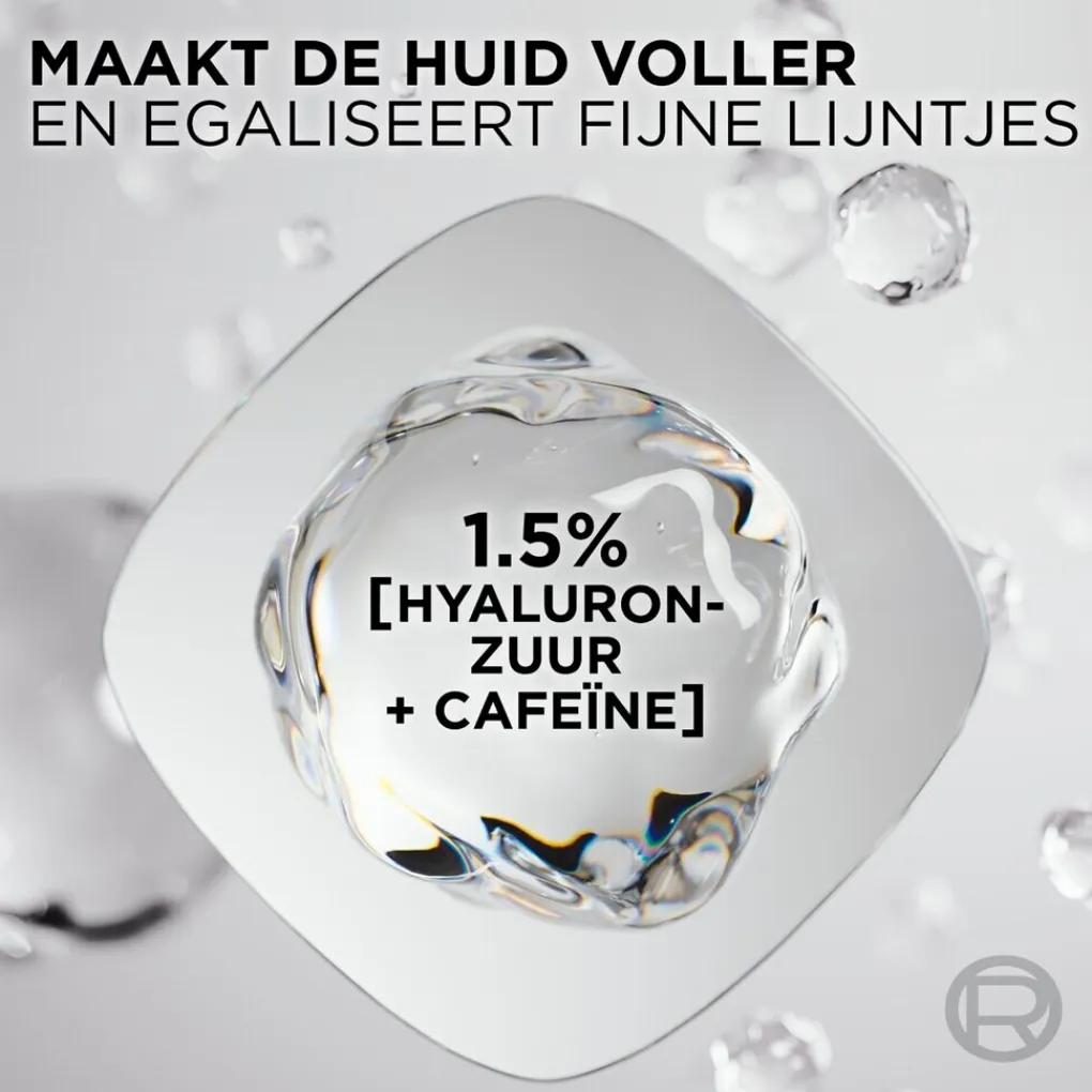 • Dankzij de toevoeging van cafeïne wordt je huid verkwikt en geëgaliseerd, waardoor donkere kringen en vermoeidheidstekenen worden verminderd voor een wakkere en stralende blik.
