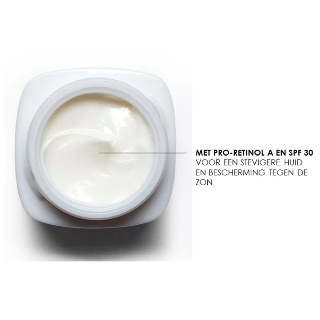 De Revitalift anti-rimpel dagcrème hydrateert en verstevigt je huid. Een ideale eerste anti-aging dagcrème, voor personen vanaf 35 jaar. Dankzij de samenstelling van fibrelastyl en proretinol A, biedt deze formule een effectieve werking tegen alle soorten rimpels. De rimpels worden in de kern aangepakt en de veerkracht van je huid wordt zichtbaar verbeterd.