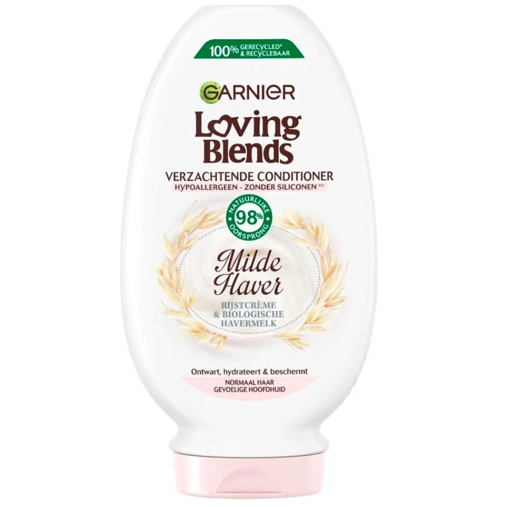 De Garnier Loving Blends Milde Haver Conditioner is een hypoallergene conditioner (ECARF gecertificeerd) van 97% natuurlijke oorsprong, speciaal ontwikkeld voor normaal haar en de gevoelige hoofdhuid.