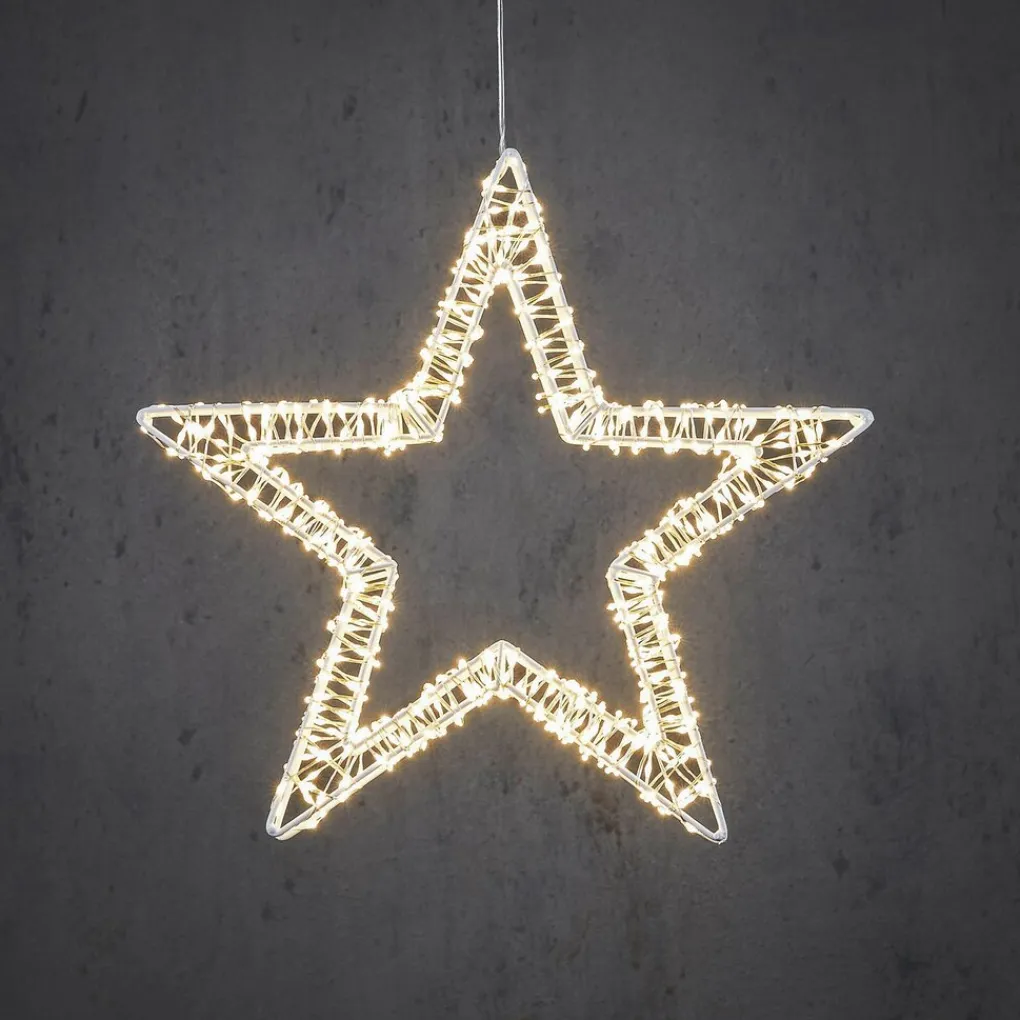 Met deze stervormige kerstverlichting van Luca Lighting geef je een gezellige sfeer aan jouw buitenruimte. De tuinverlichting hang je mooi aan je voor- of achterdeur, onder een verkapping of aan een tak in een boom. Het buitenlicht is wit en geeft warm wit licht. Er zitten 800 LED-lampjes op die werken door de IP44-stekker. Hierdoor is de verlichting spatwaterdicht. Daarnaast heeft de kerstverlichting ook een timerfunctie, ideaal! Ook leuk: hang hem binnen voor het raam, als raamdecoratie. De ster heeft een diameter van 36 cm met een snoer van 3 meter.