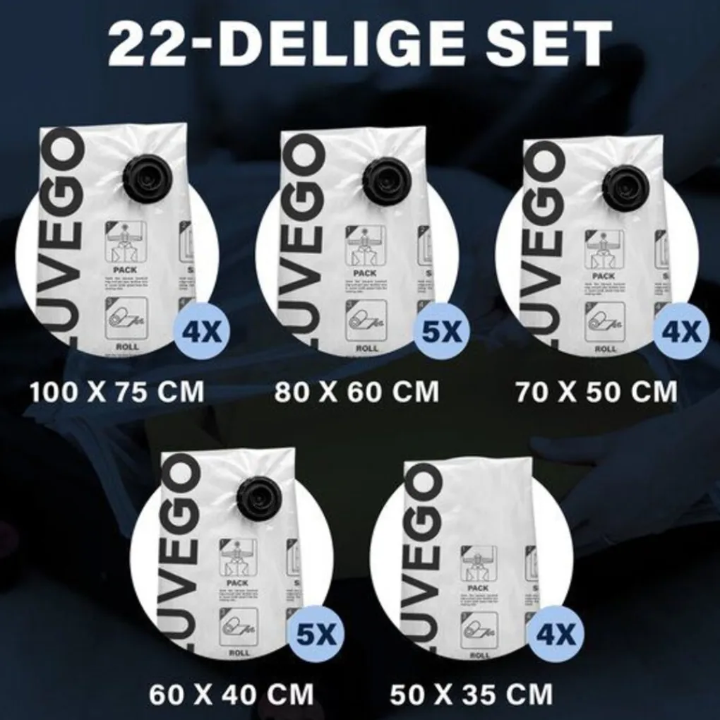 De Luvego 22-Pack vacuüm opbergzakken set bestaat uit: