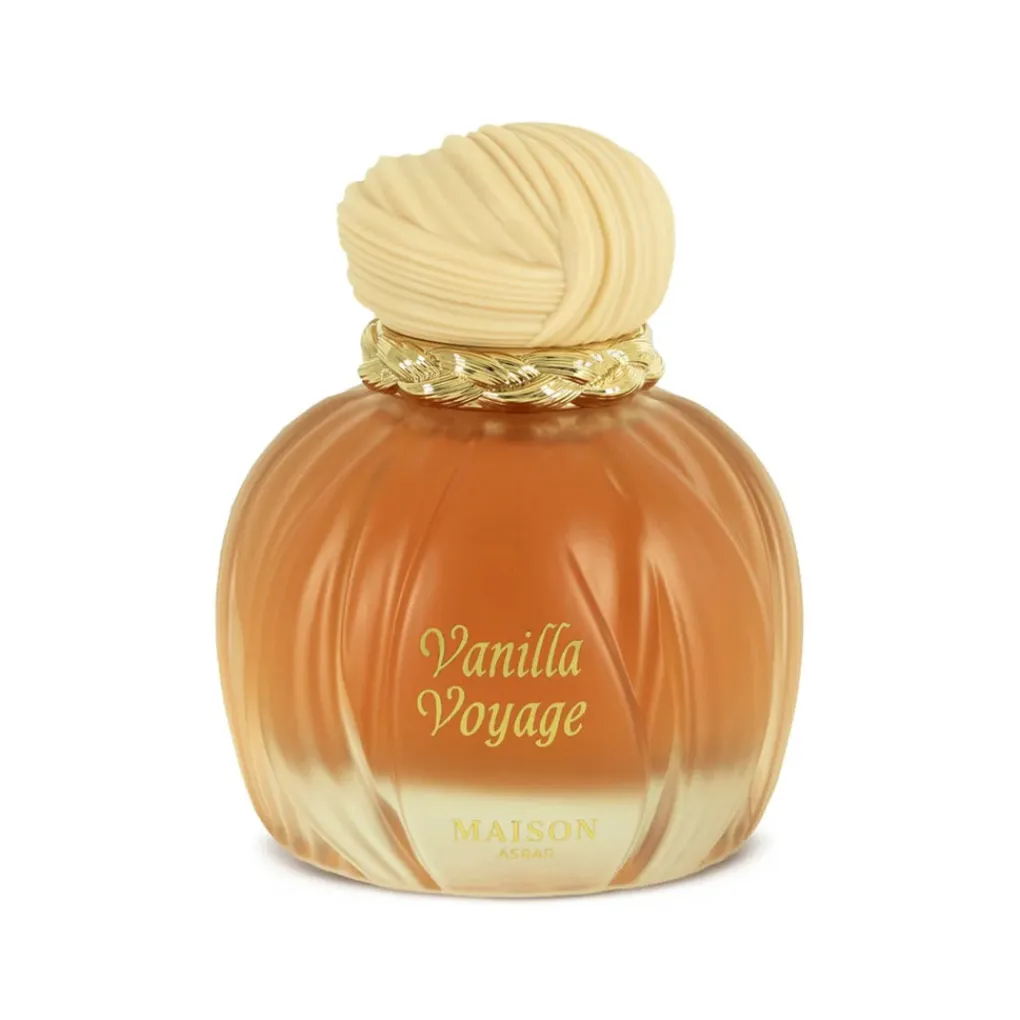 Ontdek de onweerstaanbare mix van Vanilla Voyage van Maison Asrar met zoete karamel, romige boter, honing, jasmijn en vanille.