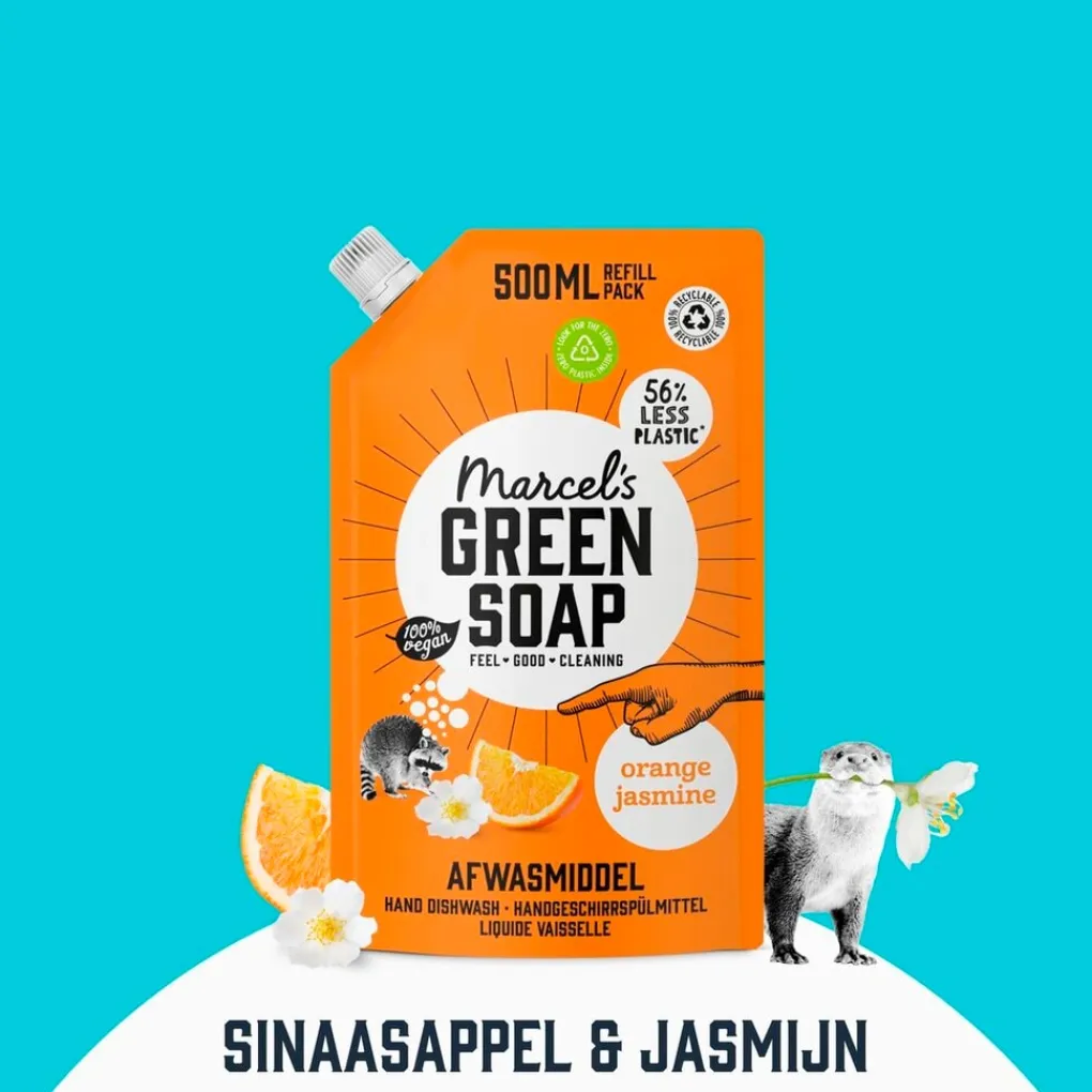 Marcel’s Green Soap Afwasmiddel Orange & Jasmine refill 500 milliliter 500ml