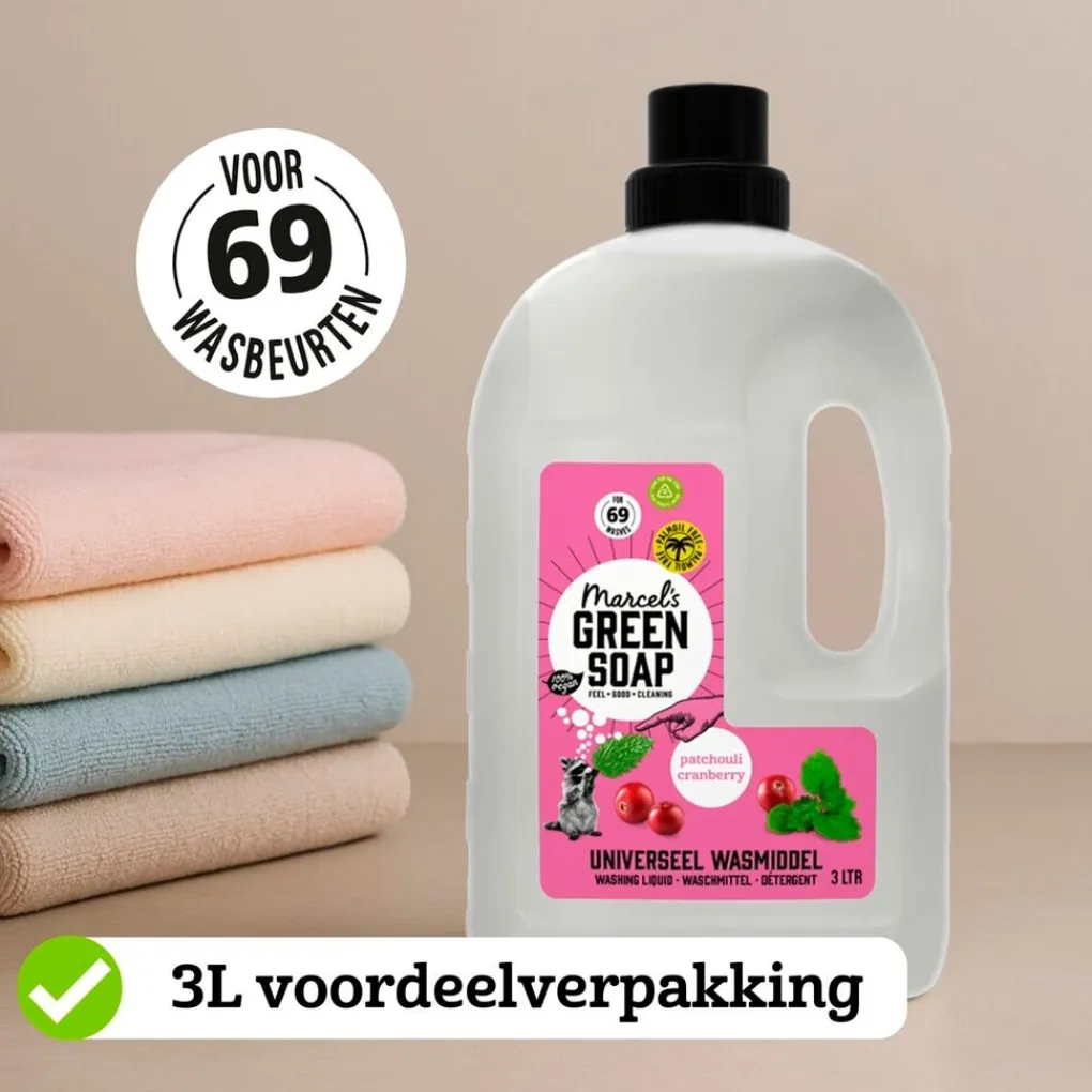 De voordelen van het Marcel’s Green Soap Patchouli Cranberry Universeel Wasmiddel: