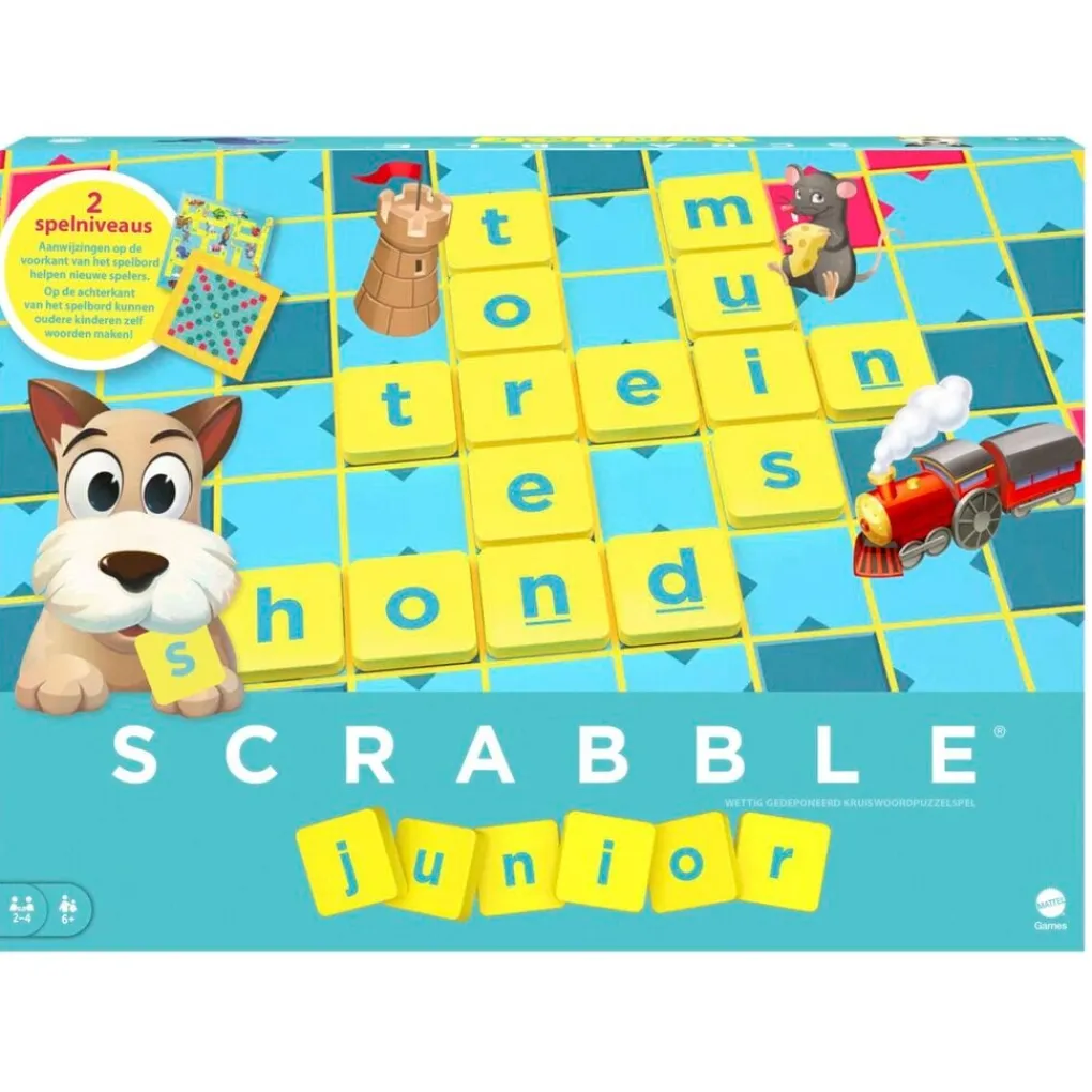Het Mattel Scrabble Junior Spel is de kinderversie van het klassieke woordspel. Het bord heeft een nieuwe vormgeving met twee verschillende zijden, voor beginners en gevorderden.