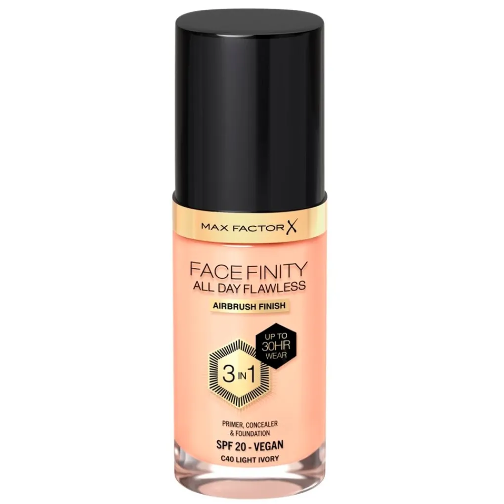 Max Factor Facefinity All Day Flawless C40 Light Ivory Foundation staat garant voor een feilloze make-uplook en is bestand tegen alle weersomstandigheden.