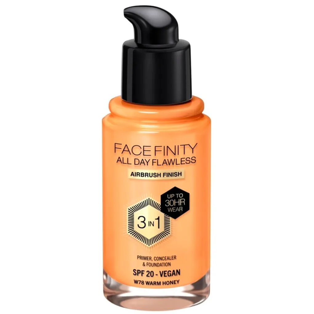 Max Factor Facefinity All Day Flawless W78 Warm Honey Foundationn staat garant voor een feilloze make-uplook en is bestand tegen alle weersomstandigheden.