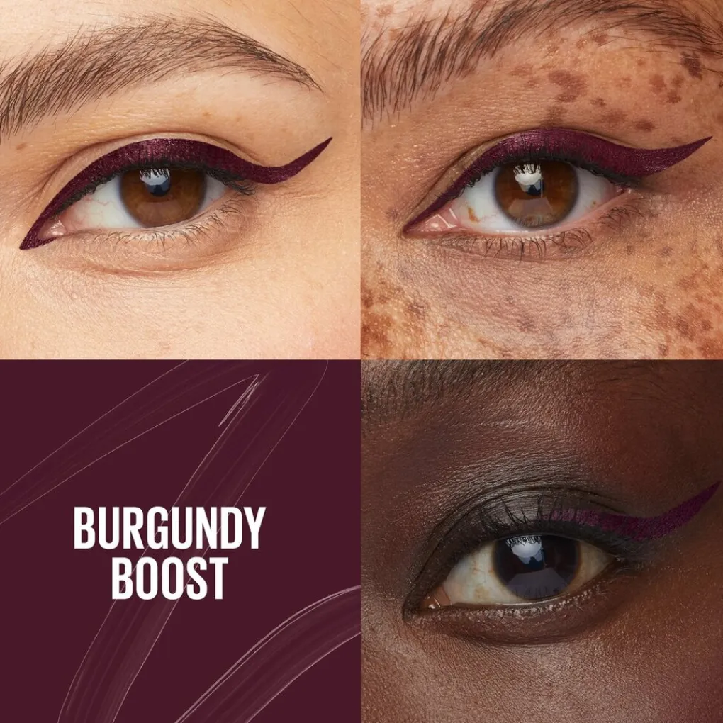 De high-impact Maybelline New York Tattoo Liner 103 Burgundy Boost Dip-Ink Liquid Eyeliner is een langhoudende inkt die tot wel 24 uur lang intense, verzadigde kleur levert voor een vleugje drama.