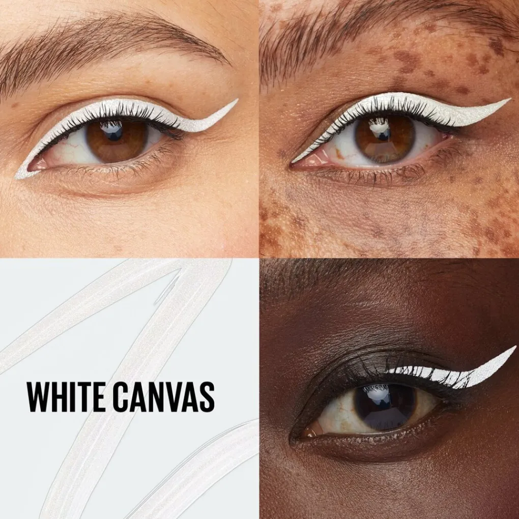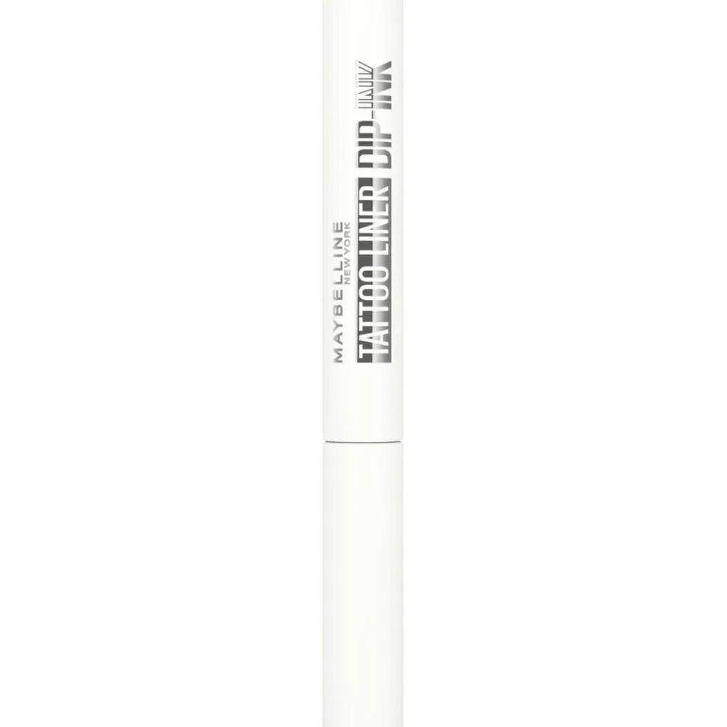 De high-impact Maybelline New York Tattoo Liner 104 White Canvas Dip-Ink Liquid Eyeliner is een langhoudende inkt die tot wel 24 uur lang intense, verzadigde kleur levert voor egedurfde, artistieke creaties.