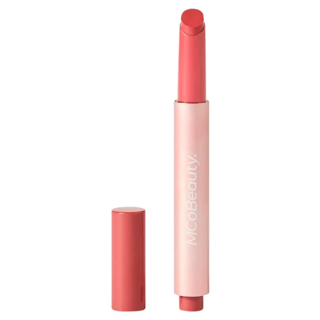 De glanzende MCoBeauty Lip Plump Lily – Dusty Pink 4-in-1 Hydrating Lacquer combineert de verzorging van een zachte balsem met de op te bouwen kleur van een lipstick.