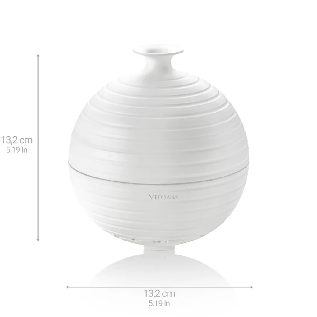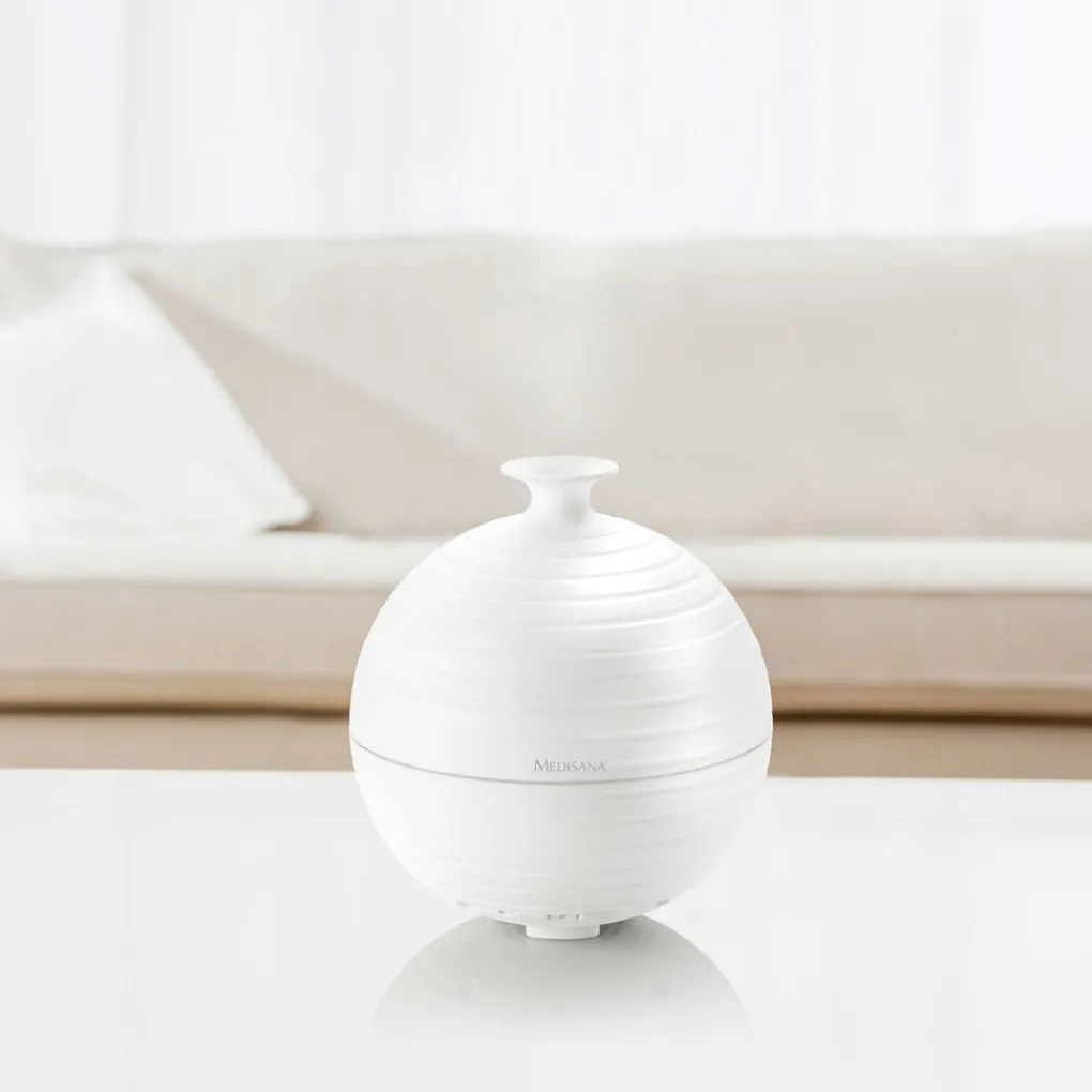 De sfeervolle bolvormige Aromavernevelaar is een ware aanwinst voor het interieur en zal de zintuigen onderdompelen in een ware Wellness-oase. Aromatherapie werkt niet alleen ontspannend, maar kan tevens bij het gebruik van bepaalde oliën juist een opwekkend of helend vermogen in het lichaam aanspreken. De 12 verschillende Aroma Essences die Medisana aanbiedt zijn ieder zorgvuldig gekozen vanwege de unieke eigenschappen en speciale sfeer die zij scheppen met behulp van de AD 620 Aromavernevelaar.