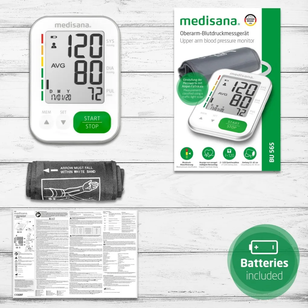 De medisana bovenarmbloeddrukmeter BU 565 biedt snellere meetresultaten dankzij de innovatieve opblaastechnologie, die de bloeddruk meet terwijl de manchet wordt opgepompt. De detectiefunctie voor onregelmatige hartslag, de zogenaamde BHI-functie, vult de nauwkeurige bloeddrukmeetfuncties op de bovenarm aan.