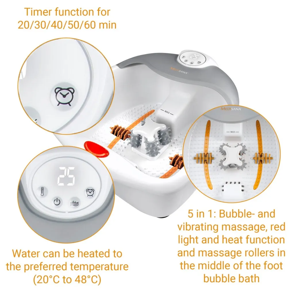 Wat dacht u van een 5-in-1 massage, waar bubbels, infrarood, warmte, massagerollers en zelfs een vibratiemassage uw voeten heerlijk zullen verwennen. Indien gewenst kunt u natuurlijk ook slechts één van deze functies kiezen. De slim geplaatste massagerollers voorzien in een heerlijke voetreflexmassage aan zowel de onderzijde als aan de binnenzijde van uw voeten. Daarnaast kunt u het water heerlijk verwarmen tot de door u gewenste temperatuur, tot maar liefst 48°c! Omdat u bij al dit heerlijks de tijd wel eens kunt vergeten, is voor het gemak een timer geïntegreerd, instelbaar in vijf stappen van 20 tot 60 minuten.