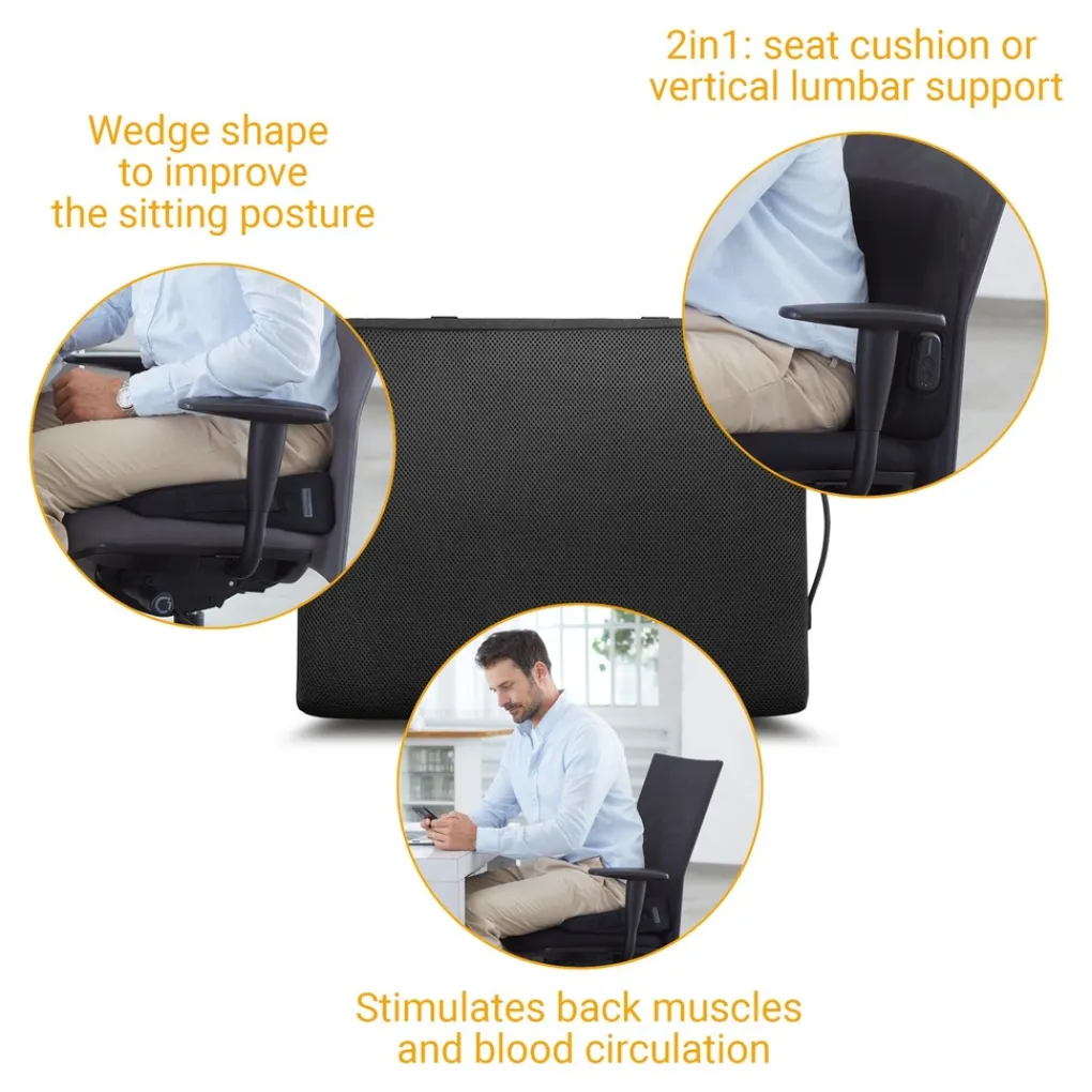 - 2-in1 gebruik als zitkussen of verticaal als lendensteun