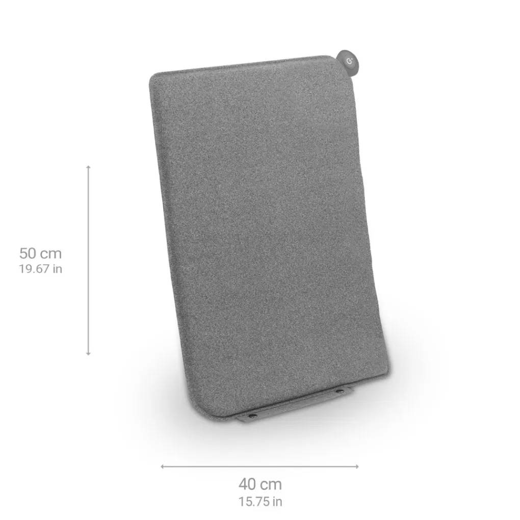 - Plat verwarmd zitkussen in compact formaat: 40 x 50 cm