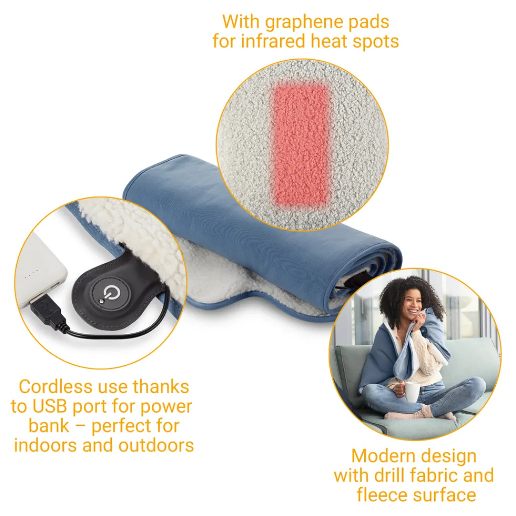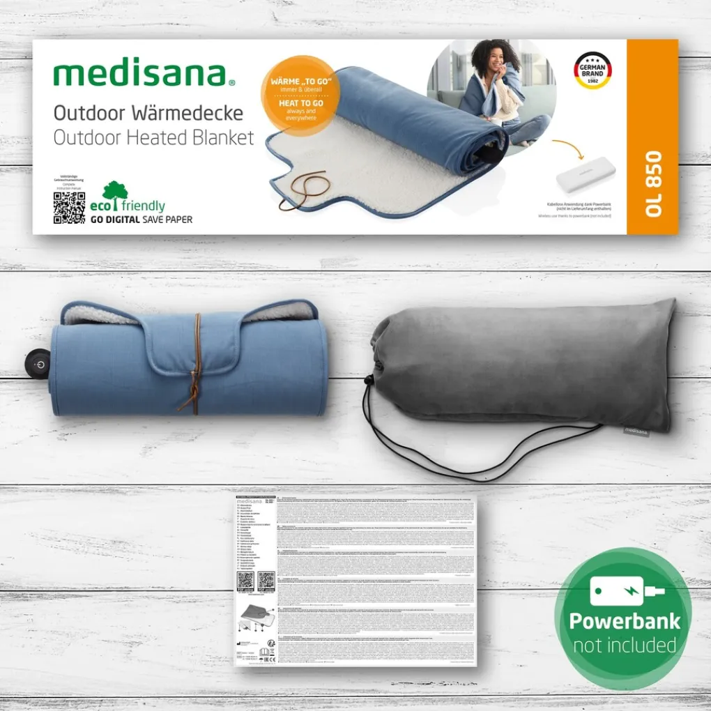 Het mobiele en draadloze gebruik van de outdoor warmtedeken OL 850 maakt flexibel gebruik mogelijk, zowel indoor als outdoor. Dankzij de geïntegreerde USB-aansluiting kan de warmtedeken eenvoudig worden gebruikt met een powerbank, die tijdens het gebruik kan worden opgeborgen in een praktische zijzak. Deze flexibiliteit maakt de warmtedeken de ideale metgezel voor een breed scala aan activiteiten. De powerbank is apart verkrijgbaar en wordt niet meegeleverd.